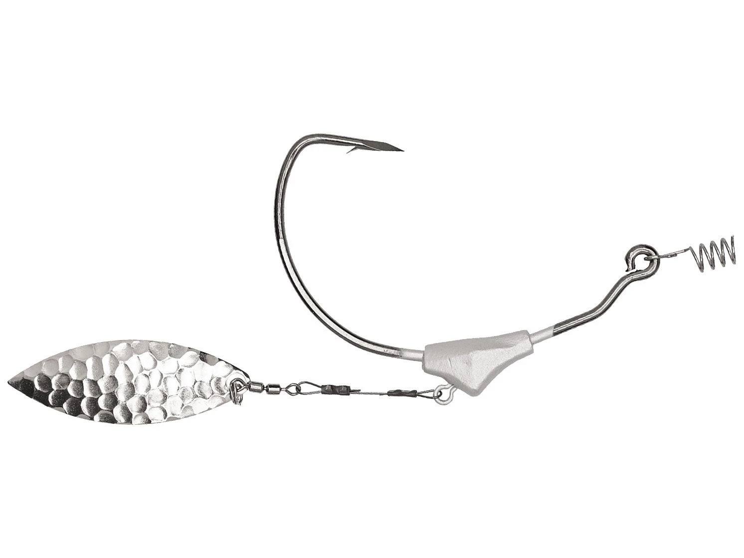 The Lazer TroKar Swim Blade is an underspin that combines the strength and heft of the TK170 Magnum Weighted Swimbait Hook with the flash and attraction of a nickel Willow blade. Made from medium gauge wire, the Lazer TroKar Swim Blade employs a small hammered nickel Willow blade attached by a titanium wire and double barrel swivel to produce fish-attracting flash and subtle vibration. It is also equipped with a spring baitkeeper that makes secure rigging easy, and its extra wide gap allows is able to accommodate larger bodied swimbaits. To top it all off, Lazer TroKar’s surgically-sharpened, triple-sided hook point delivers extreme sharpness and hook penetration. Available in 1/8, 1/4, and 3/8 ounce weights with 3/0, 5/0, or 7/0 hooks.
