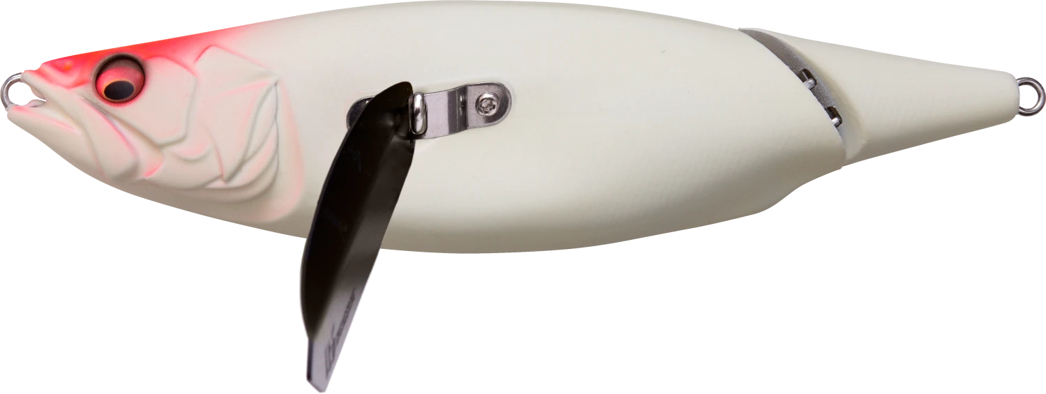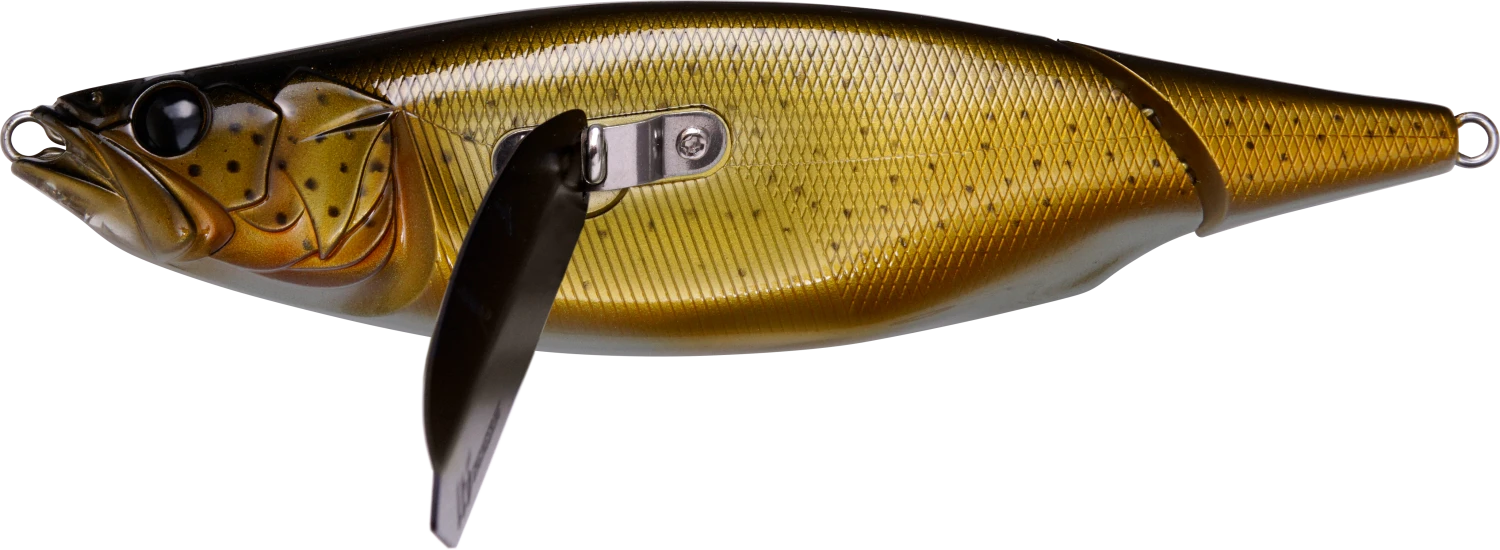 - Jointed design, R.A.B. (Patent Pending) pendulum-balancer, customizable duralumin wings, and Megabass’ unmistakable fit and finish.