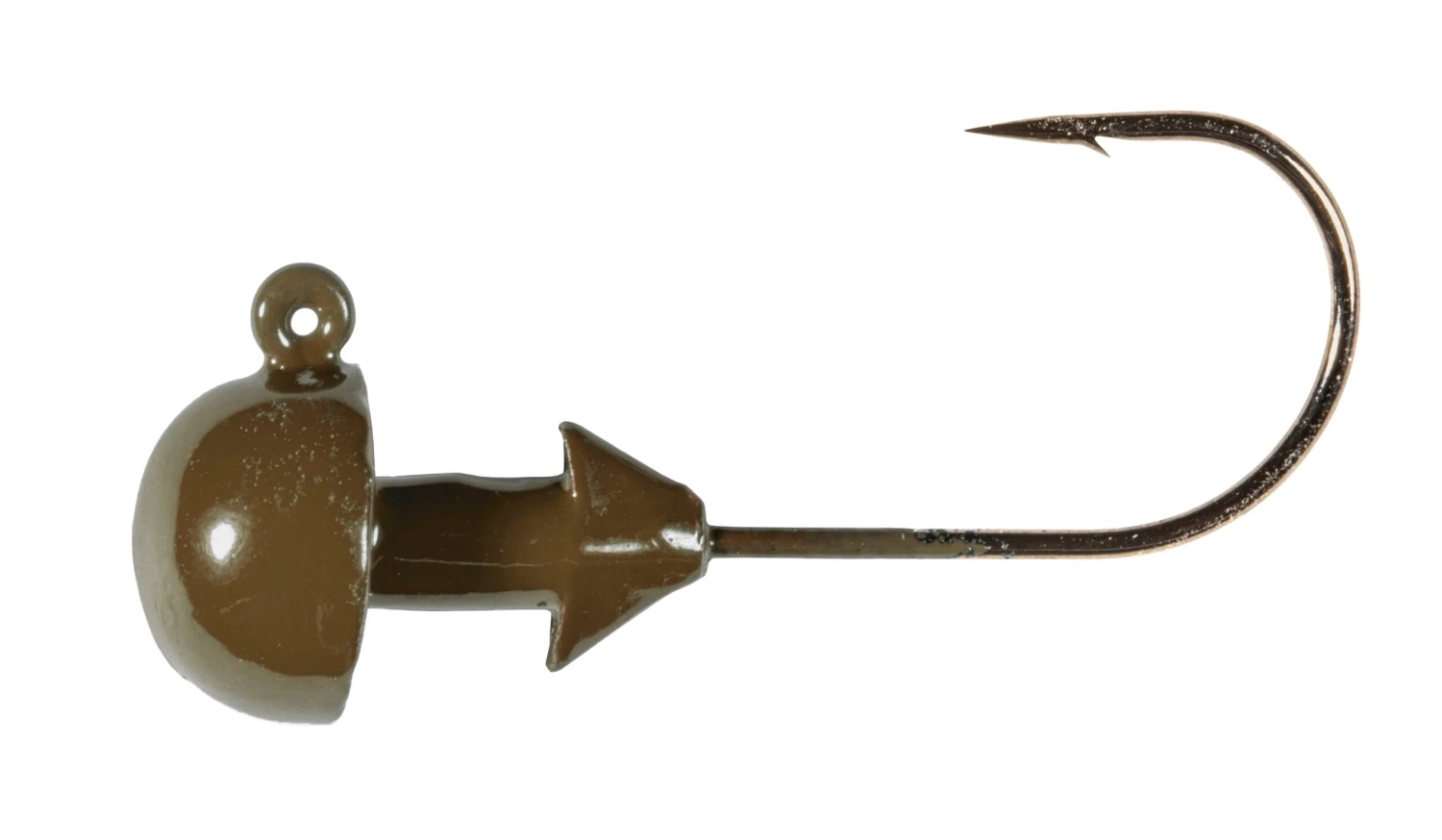 The OG Mushroom Jighead has the signature half-moon shaped head that helps it hop around on the bottom without getting hung-up as well a tiny (size 4 on the 1/32 ounce and 1/16 models, size 2 on the 3/32 ounce model), light-wire VMC NeedlePoint hook perfect for this finesse presentation. Additionally, the jighead has a double baitkeeper molded into the hook shank for securely holding soft plastics and is finished off a with a durable powder-coated paint finish that doesn’t easily chip.